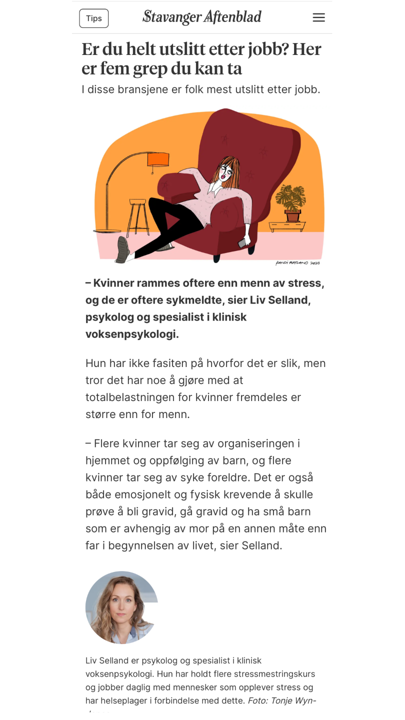 Hei! Jeg er Liv Selland, psykologspesialist og forfatter.